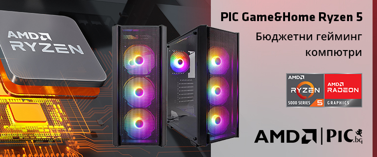 Настолните компютри PIC Game&Home Ryzen 5 са идеалният гейминг партньор. Те съдържат в себе си мощните процесори AMD Ryzen™ 5 с бързите вградени видеокарти AMD Radeon™ Graphics. Това е един бюджетен вариант за любителите геймъри, който съчетава мощ и производителност достатъчни, за да играете голяма част от любимите си игри.