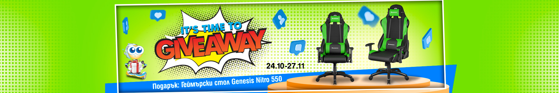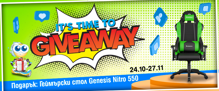Този път ще зарадваме 1 късметлия със страхотен геймърски стол Genesis Nitro 550. С него ще поддържате правилна стойка на тялото. Той ще ви осигури максимално удобство дори и по време на най-дългите битки и издръжливост за дълги години употреба.