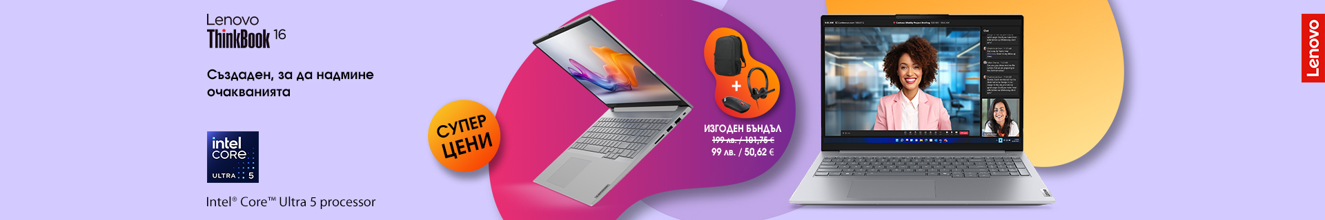 Мощен лаптоп, проектиран за малки и средни бизнеси и напреднали потребители, Lenovo ThinkBook 16 Gen 8 работи с процесор Intel® Core™, за да подобри ежедневната ви производителност. С по-висока скорост на обработка, той се справя безпроблемно с комплексни задачи с данни. Освен това, усъвършенстваните функции оптимизират интелигентно енергийната ефективност за интензивни работни процеси, за да ви осигурят по-отзивчиво изчислително преживяване.
