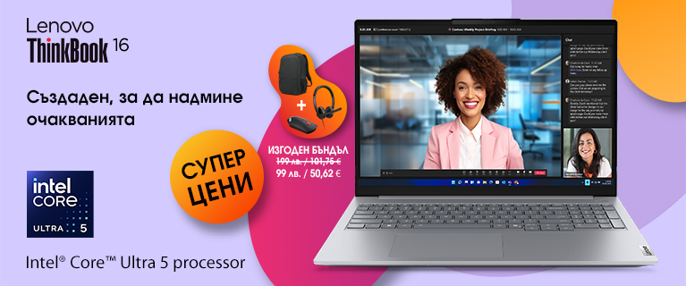 Насладете се на изкуството на мобилността с елегантния и тънък профил на ThinkBook 16 Gen 8. Леката му алуминиева конструкция и модулен дизайн предлагат голяма издръжливост, както и гъвкавост за работа във всякаква среда. Почти липсващите рамки увеличават максимално пространството на екрана, гарантирайки, че всяка презентация или стрийминг сесия ще бъде наистина впечатляваща.