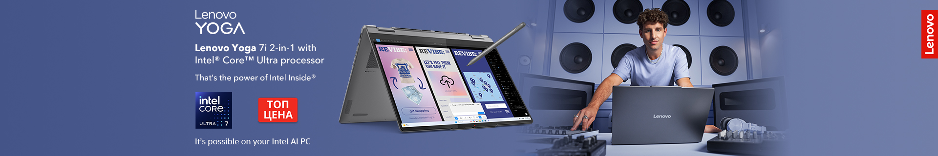 Творете навсякъде с Yoga 7i 2-in-1. Дизайнът му на 360° и сензорният екран ви позволяват да работите във всякакви ситуации. Задвижван от до Intel® Core™ Ultra 7 Evo и 40+ TOPS NPU, този Copilot+ лаптоп управлява енергията ефективно. 14-инчовият PureSight OLED дисплей с до 120 Hz честота на опресняване и Dolby Vision дават живот на вашите идеи.