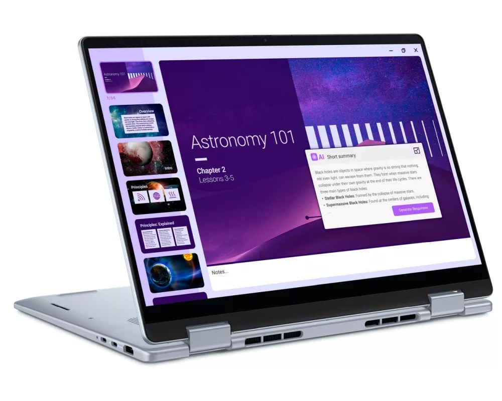 Based on internal analysis and testing, November 2024. McAfee's Deepfake Detector running on devices with Intel® Core™ Ultra 200V series processors was compared to previous-generation Intel® Core™ Ultra processors. Results may vary. [ ↑ ] Based on internal analysis and testing, compared to previous generation Intel® Core™ Ultra processor, September 2024. Select AI-enhanced collaboration features include, eye contact correction, standard blur, portrait blur, automatic framing, calls with audio only, virtual background. Results may vary. [ ↑ ] Works with specific text, image, and document formats only; optimized for select languages (English, Chinese (Simplified), French, German, Japanese, and Spanish). See aka.ms/copilotpluspcs (In English). [ ↑ ] Copilot Vision on Windows is currently available in the US only through the Copilot on Windows app. [ ↑ ] Works with specific text, image, and document formats only; optimized for select languages (English, Chinese (Simplified), French, German, Japanese, and Spanish). See aka.ms/copilotpluspcs (In English). [ ↑ ] Image actions now available across devices; other actions vary by device, region, language, and character sets. Subscription required for some actions. Coming to the European Economic Area later in 2025. See aka.ms/copilotpluspcs (In English). [ ↑ ] Sold separately. [ ↑ ] Based on internal analysis, December 2024. Top cover: 50% recycled and 50% low emissions aluminum, Fan-housing:25% recycled ocean-bound plastic, Palmrest support bracket:15% recycled steel. [ ↑ ] Based on internal analysis, December 2024. EPEAT registered where applicable. EPEAT registration varies by country. See www.epeat.net for registration status by country. [ ↑ ] Timing of feature delivery varies by device. Feature availability varies by market. Requires Microsoft account sign in. [ ↑ ] Windows Studio Effects (background blur, eye contact, voice focus, and automatic framing) are hardware dependent and require a qualified Neural Processing Unit (NPU). [ ↑ ] 3.5mm Universal Audio Jack functionality varies by model configuration. For best results, use Dell recommended audio accessories. [ ↑ ] Weights vary depending on configurations and manufacturing variability. [ ↑ ] Onsite service after remote diagnosis (a) Onsite Service after remote diagnosis is determined by the online or phone technician, and may involve customer access to the inside of the system and multiple extended sessions. If the issue is covered by the Limited Hardware Warranty and cannot be resolved remotely, the technician and/or replacement part will be dispatched, usually in 1 or 2 business days, following the completion of the remote diagnosis. The customer must return the original hardware to Dell according to the rules specified. On-site service is provided by Dell Marketing L.P; Availability varies. Other conditions apply. (b) Advanced Exchange Service replaces hardware after remote diagnosis. The customer must return the original hardware to Dell according to the rules specified. Advanced Exchange Service is subject to country availability. (c) For complete details about On-site Service or Advanced Exchange Service, see dell.com/servicecontracts. [ ↑ ] For supported systems and requirements, please refer to our user guide (SupportAssist for Home PCs version for personal use) or administrator guide (SupportAssist for Business PCs version for PC fleet management) and click "supported PCs". Proactive and predictive capabilities depend upon your active service plan and Dell Technologies business rules. For ProSupport Suite for PCs capabilities, view our administrator guide and click "Connect and manage capabilities and Dell service plans". For Dell Care Suite, Premium Support Suite, or Alienware Care Suite for PCs capabilities, view the user guide and click "SupportAssist capabilities and Dell Services plans". [ ↑ ] Accidental damage coverage excludes theft, loss, and damage due to fire, flood, or other acts of nature, or intentional damage. Customer must return damaged unit. Limit of 1 qualified incident per contract year. [ ↑ ]
