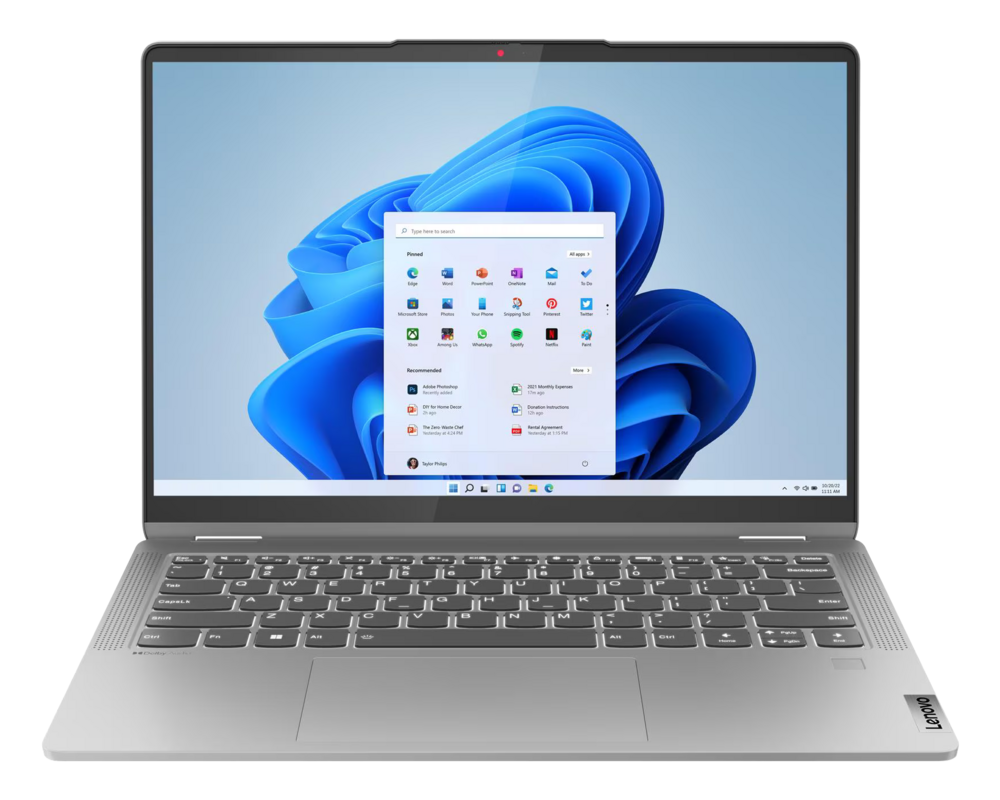 Смарт избор за гъвкавост Гъвкав лаптоп 2-в-1 с 360-градусов конвертируем дизайн Високопроизводителни процесори от AMD Ryzen™ 7000 Series Камера с висока разделителна способност и интелигентно потискане на шума за подобряване на видеоразговорите 15 минути бързо зарежда ви осигурява два часа живот на батерията Насладете се на ясен и чист звук с Dolby Audio™