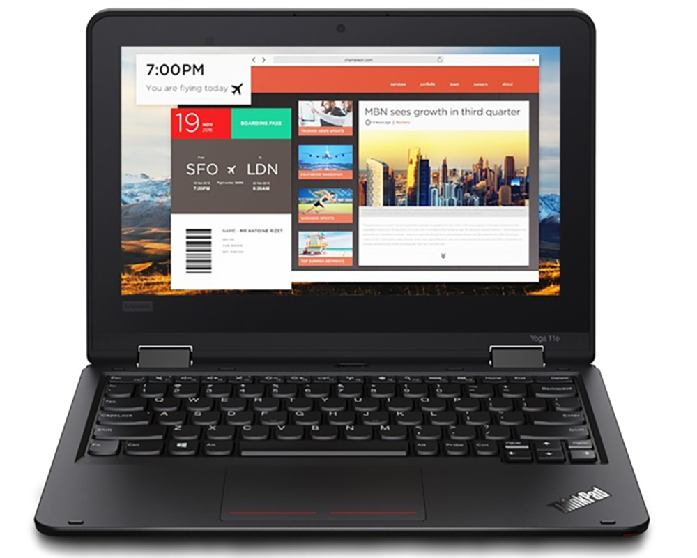 Достатъчно здрав за всяка оживена класна стая, издръжливият Yoga 11e притежава мощен процесор и батерия, издържаща цял ден. Той може да се използва като таблет, лаптоп и всичко останало. Изграден с рециклирани отпадни материали, той е интелигентен, екологичен избор за ученици и учители.