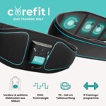 | Electrodes | 4 wear-free contact electrodes (2x frontal & 2x lateral abdominal muscles) |