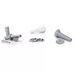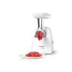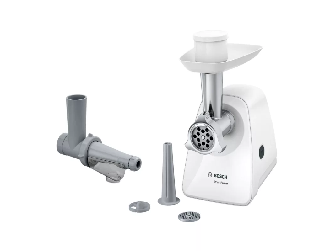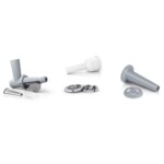 Малка по размер, прецизна в ежедневната работа. Мощен мотор с максимална мощност 1500 W: равномерно обработено месо в най-кратки срокове. Компактен дизайн: бързо под ръка или лесно съхранение на месомелачката. Приставка за наденица: лесният начин за пълнене на пресни, домашно приготвени наденички. Приставка за пресоване на плодове: създава пресни сокове от плодове или зеленчуци, дори премахва стеблата от касис. Диск от неръждаема стомана: устойчив, безопасен за храни, неутрален на вкус или лесен за почистване.