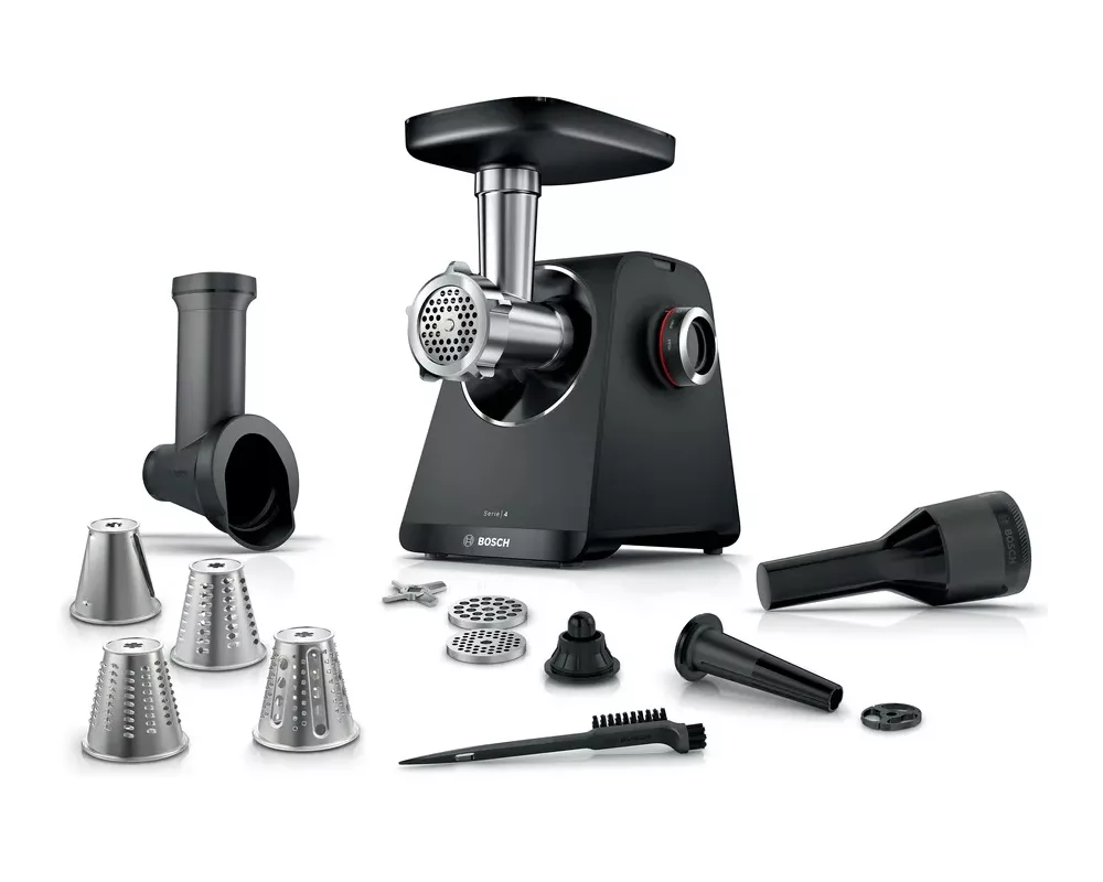Meat mincer - MultiPower 1900 W, Planetary gearbox, 2,5 kg/min, kebbe attachment, sausage attachment, reverse function, Black