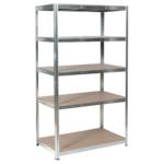 Carmen CR-1013 е стабилен стелаж от галванизиран метал с размери 180x90x30 см. С негова помощ ще подредите килера или гаража у дома, както и работното си пространство. Разполага с 5 МДФ рафта, всеки от които може да издържа на максимално натоварване от 100 кг. Благодарение на безболтовия монтаж височината на рафтовете може да бъде лесно регулирана и променяна. Пълна информация за размерите и характеристиките на модела ще намерите в таблицата в таб/поле "Техническа информация".