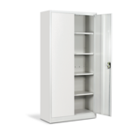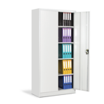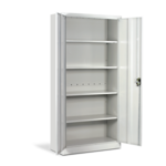 Метален шкаф Carmen CR-1235 E J 90 е идеалното решение за организиране на документи и вещи. Изработен от праховобоядисан метал с гладко покритие, той предлага четири рафта с товароносимост до 40 кг всеки. Плътните врати със заключване осигуряват сигурност, а светлосивият цвят се вписва безупречно в различни работни или домашни интериори. Перфектен избор за ефективно и безопасно съхранение! Пълна информация за размерите и характеристиките на модела ще намерите в таблицата в таб/поле "Техническа информация".