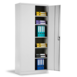 Метален шкаф CR-1236 L от серията метални шкафове на Carmen разполага с две метални врати и рафтове с регулируема височина. Системата от метални мебели на Carmen включва офис контейнери, метални гардероби за съблекалня, метални контейнери, метални шкафове за документи, кардекс и други. Пълна информация за размерите и характеристиките на модела ще намерите в таблицата в таб/поле "Техническа информация".