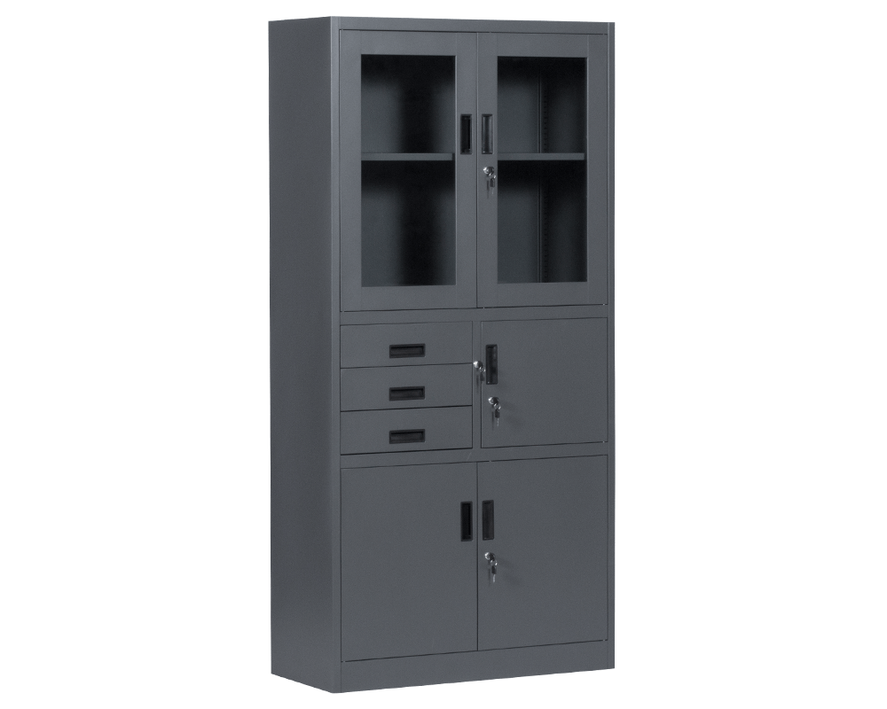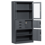 Металният шкаф за документи Carmen CR-1240 E SAND е практичен модел с удобно разпределение от два шкафа, 3 чекмеджета и 1 сейф. Всички отделения могат да се заключват. Шкафовете са с един рафт с регулируема височина и товароносимост до 40 кг. Пълна информация за размерите и характеристиките на модела ще намерите в таблицата в таб/поле "Техническа информация".