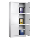 Метален шкаф CR-1260 LZ от серията метални шкафове на Carmen разполага с три отделения, метални врати и рафтове с регулируема височина. Системата от метални мебели на Carmen включва офис контейнери, метални гардероби за съблекалня, метални контейнери, метални шкафове за документи, кардекс и други.