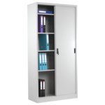 Carmen CR-1266 J е метален шкаф за документи с плъзгащи врати със заключване. Той разполага с 4 рафта с регулируема височина и товароносимост до 40 кг. за всеки. Пълна информация за размерите и характеристиките на модела ще намерите в таблицата в таб/поле "Техническа информация".