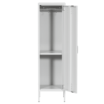 Металният шкаф Carmen CR-1601 J е единичен гардероб, който по желание може да бъде монтиран към стена. Той е снабден с лост за закачалки и един регулируем рафт. Вратата е с магнитно затваряне и вентилационни отвори за приток на въздух. Пълна информация за размерите и характеристиките на модела ще намерите в таблицата в таб/поле "Техническа информация".