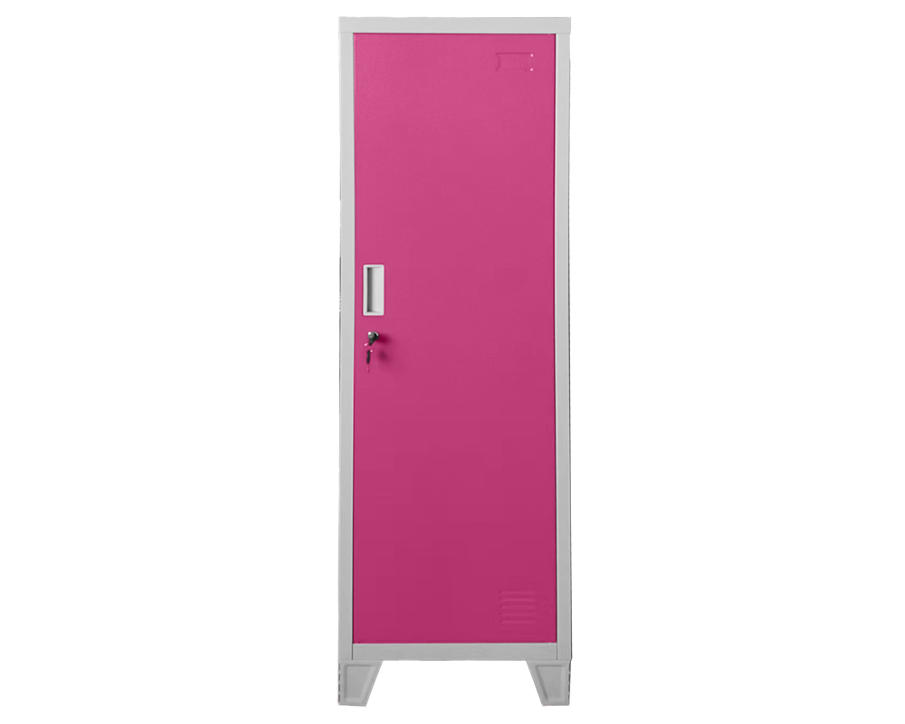 Метален шкаф Carmen CR-1604-1 JZ е практичен метален гардероб с плътна врата, която се заключва с ключ. Разполага с един рафт с товароносимост до 40 кг, вграден лост за закачалки и вентилационен отвор за по-добра циркулация на въздуха. Изработен е от праховобоядисан метал с грапаво-шагрен покритие и се предлага в комбинация от светлосив цвят с розово, синьо или оранжево. Подходящ е за оборудване на детски градини. Пълна информация за размерите и характеристиките на модела ще намерите в таблицата в таб/поле 'Техническа информация'.