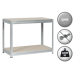 Организирайте работното място или дома си с метален стелаж MEGA. Той е с размери 87x120x60 см и е подходящ за организация на тежки предмети. Разполага с 2 МДФ рафта, всеки с товароносимост до 600 кг. Безболтовата система гарантира безпроблемен монтаж. Пълна информация за размерите и характеристиките на модела ще намерите в таблицата в таб/поле "Техническа информация".