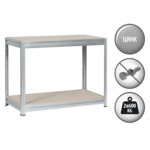 MEGA е стелаж, изработен от галванизиран метал с размери 87x160x60. Намира широко приложение в дома или на работното място. Разполага с два МДФ регулируеми рафта, всеки с максимална товароносимост от 600 кг. Меалният стелаж е много лесен за монтаж, благодарение на безболтовата система. Пълна информация за размерите и характеристиките на модела ще намерите в таблицата в таб/поле "Техническа информация".