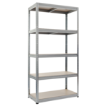 Металният стелаж STAR с размери 180x90x45 см е идеално решение за съхранение на тежки товари. Всеки от неговите 5 МДФ рафта има укрепващ елемент и може да издържи натоварване до 350 кг. За монтажа на стелажа не са нужни болтове. Пълна информация за размерите и характеристиките на модела ще намерите в таблицата в таб/поле "Техническа информация".