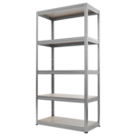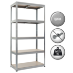 STAR е стабилен метален стелаж с размери 213х90х45 см. Той е изработен от галванизиран метал и 5 МДФ рафта, всеки от които има максимално натоварване до 175 кг. Тяхната височина може да бъде регулирана и променяна лесно благодарение на безболтовия монтаж. Пълна информация за размерите и характеристиките на модела ще намерите в таблицата в таб/поле "Техническа информация".