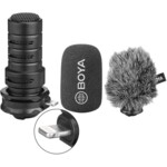 - Boya BY-DM200 е професионален моно кондензаторен микрофон, който се включва директно в Apple iOS устройство с Lightning конектор. С две вградени микрофонни капсули за създаване на добър моно звуков ефект.