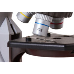 Bresser Junior 40–640x Microscope is equipped with three objectives lenses, which allow for 40–640x magnification range. To change the magnification, you don’t have to pause your work – you can quickly switch objectives using the revolving nosepiece. The unique feature of this model is its sliding two-position eyepiece, which replaces two eyepieces with an increase of 10 and 16-fold – and it is really easy to use. Your kid won’t need to change eyepieces; therefore they won’t get lost.