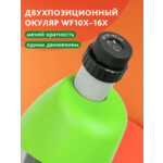 Bresser Junior 40–640x Microscope is equipped with three objectives lenses, which allow for 40–640x magnification range. To change the magnification, you don’t have to pause your work – you can quickly switch objectives using the revolving nosepiece. The unique feature of this model is its sliding two-position eyepiece, which replaces two eyepieces with an increase of 10 and 16-fold – and it is really easy to use. Your kid won’t need to change eyepieces; therefore they won’t get lost.