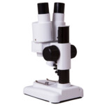 Оптиката е с увеличение 20х и създава винаги отчетливи и контрастни изображения в цялото зрително поле. Ще можете да изследвате структурата на наблюдаваните обекти, да откривате и изследвате дефектите на техните повърхности и да провеждате прецизни операции с биологични образци. Над предметната маса има горно светодиодно осветление, което създава достатъчна яркост за работа през нощта в пълна тъмнина. Осветлението се захранва с две батерии АА (не са включени към уреда).