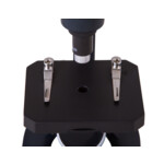 Този модел има наклонена глава и предметна маса, така че Вие можете да регулирате удобно микроскопа на желаната от Вас позиция по време на наблюденията. Предметната маса има щипки за задържане на образците (една или две, колкото позволява предметната маса) на място. Надеждна метална конструкция осигурява стабилност на микроскопа.