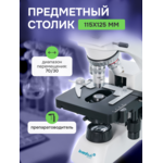 Микроскопът е оборудван с предметна маса с механична скала, която помага за точно разполагане на образеца под обектива. Под предметната маса има регулируем по височина кондензер Abbe с ирисова диафрагма. Можете да монтирате светлинен филтър в специален държач. Мощното халогенно осветление е снабдено с колектор; има регулиране на яркостта. Осветлението е с променливотоково захранване.
