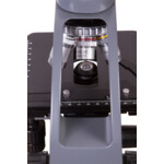 Микроскопът е оборудван с удобна бинокулярна глава. Наблюдението с двете очи е много по-добро за Вашето зрение. Продължителните наблюдения вече не предизвикват неудобство и умора. Главата е наклонена на 45° и се върти около оста си. Въртящият се механизъм ще Ви освободи от преместването на целия инструмент, когато искате да споделите хода на научните изследвания с колега.