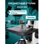 Образците се фиксират на предметната маса с държачи за образци и дискова диафрагма. Осветлението е двустранно: светодиодите са разположени от двете страни на предметната маса. Има функция за регулиране на яркостта. Осветлението може да се осигурява чрез променливотоково захранване или с батерии.