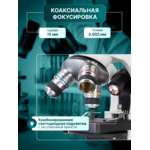| Фокусиране | коаксиално, грубо (15 mm) и фино (0,002 mm) |