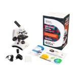 която може да се завърта на 360°, светодиодно осветление, прецизно регулиране на фокуса. Увеличение от 40x до 400x