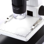 Предметната маса на този микроскоп е оборудвана с измервателна скала (8 cm по ос X, 6 cm по ос Y) и две щипки за закрепване на образеца под камерата.Висококачественият течнокристален панел осигурява кристално ясни изображения и има бутони, които Ви позволяват да променяте бързо яркостта, експозицията и баланса на цветовете. Можете да свържете течнокристалния дисплей на Levenhuk DTX 500 към Вашия компютър с помощта на включения в комплекта USB кабел и да копирате всички създадени по време на Вашите наблюдения файлове на Вашия твърд диск. Този забележителен модел има и AV изход за прехвърляне на наблюдаваните изображения на телевизионен екран или на проектор в реално време.