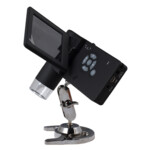 Levenhuk DTX 500 Mobi е преносим микроскоп с вграден 3" цветен течнокристален дисплей. Този модел реализира увеличение до 400x, има плавно цифрово увеличение до 4х и е подходящ за микроскопски наблюдения на всякакви повърхности, както у дома, така и навън. Всичко това прави този микроскоп отличен подарък за всеки ученик. Микроскопът Ви позволява да правите лесно снимки и да записвате видеоклипове на наблюдавани обекти. Всички файлове, създадени по време на Вашите наблюдения, се запаметяват на microSD картата. Комплектът включва и специален софтуер. Литиево-йонна батерия осигурява автономна работа до 4 часа. Корпусът е с гумена обвивка, което го прави приятен на допир и осигурява удобно захващане.