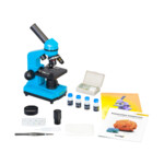 Микроскопът Levenhuk Rainbow 2L Azure (Лазур) е най-лесният начин да направите учебния процес наистина забавен. С този микроскоп от начално ниво децата могат да изучават детайлно стайни растения и много други интересни неща. Яркият и стилен дизайн на този модел ще добави още цветове към интериора на детската стая. Той няма да бъде просто детайл от интериора, а любим инструмент за обучение и забавление. Оптичните елементи са изработени от специално изключително прозрачно стъкло. За по-ясни и отчетливи изображения лещите са покрити с няколко слоя антирефлексно покритие. Микроскопът има горна и долна светодиодни системи за осветление и е перфектен за наблюдение на прозрачни и полупрозрачни образци, непрозрачни обекти. Корпусът е изработен от пластмаса. Главата е наклонена на 45°. Устройството може да се захранва от електрически контакт или с батерии. Набор за експерименти включва всичко необходимо за извършване на интересни експерименти с микроскопа.