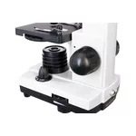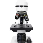 Лещите на микроскопите са изработени от специално оптично стъкло с висока прозрачност. Оптичните повърхности са покрити допълнително с многослойно покритие, което увеличава пропускането на светлината и подобрява качеството на изображението. Този модел се предлага с три лещи на обектива, така че микроскопът е в състояние да осигури увеличение 40–400x. Увеличението се променя много лесно – всичко, което трябва да направите, е да завъртите револверната глава.