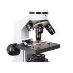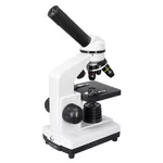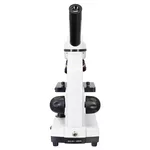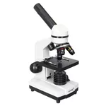 Пластмасовият корпус на този микроскоп е много по-лек от направените от метал – лесно и удобно е микроскопът да се вземе в училище, на разходка или когато отивате у приятели. В същото време микроскопът е много здрав, така че е идеален за интензивна употреба. За да се осигури по-голям комфорт при наблюденията, главата е наклонена на 45°. Осветлението може да се захранва с батерии или от мрежата.