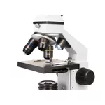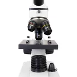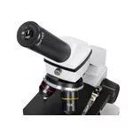 Надеждният метален корпус на микроскопа дава възможност за честа употреба. Наклонената под ъгъл 45 градуса монокулярна глава осигурява удобна позиция за наблюдение. Тя се върти на 360 градуса около оста си – тази функция е наистина полезна за групова работа.
