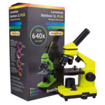 Ярък микроскоп Levenhuk Rainbow 2L PLUS Lime – за тези, които са любопитни за света около тях. Изведнъж наистина скучните уроци по биология ще се превърнат във вълнуващо приключение – с микроскопа Levenhuk Rainbow 2L PLUS Lime децата ще могат да видят чудесата на микрокосмоса със собствените си очи! Качествената оптика на микроскопа го прави идеален избор за студент по биология или дори за лабораторен техник.