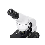 Корпусът на микроскопа е изработен от качествена пластмаса, поради което уредът е лек и в същото време издръжлив. Главата е наклонена на 45° и осигурява възможност за наблюдение в по-удобна позиция. Тя също така може да се върти на 360° около своята ос, което е особено удобно по време на групови наблюдения – главата може да се върти лесно, за да може да наблюдава следващият участник. За захранване можете да използвате електрически контакт или батерии.