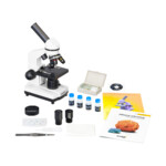 Модерен микроскоп за начинаещи изследователи на микрокосмоса. Включена е цифрова камера и набор за експерименти. Увеличение: 40–400x