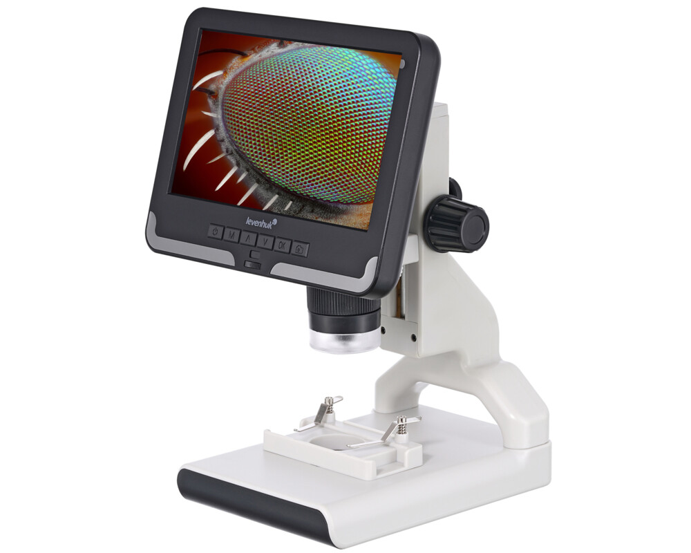 Levenhuk Rainbow DM700 LCD е цифров микроскоп с голям екран с течнокристален дисплей. Този микроскоп може да се използва за изследване на текстилни материали, насекоми, монети и банкноти, проби от растения, както и на машини и електронни устройства. Микроскопът Ви позволява да заснемате изображения и да правите видеозаписи с висока разделителна способност, като също можете да използвате безжично дистанционно управление за да управлявате устройството.
