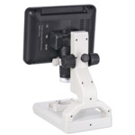 Увеличението на микроскопа се променя от 10 до 200 пъти, а оптичното увеличение е от 10 до 50 пъти. Изображението от обектива се показва на вграден 7-инчов цветен екран. Изображението е рязко и отчетливо. Под екрана има бутони за управление, които се дублират на устройството за дистанционно управление. Чрез дистанционното управление можете да регулирате яркостта на осветлението, да избирате подходящо за наблюденията увеличение, да заснемате изображения и да правите видеозаписи и много други.