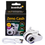 Джобният микроскоп Levenhuk Zeno Cash ZC7 е увеличителен инструмент с вградена светлина. Благодарение на светлината той може да се използва за проверка на банкноти. Този микроскоп е компактен и лек и можете лесно да го вземете със себе си на среща с бизнес партньори или на продължителни пътувания в чужбина. Той ще Ви е от полза на пазара или в супермаркета: можете да проверите всяка банкнота, която е в ръцете Ви.