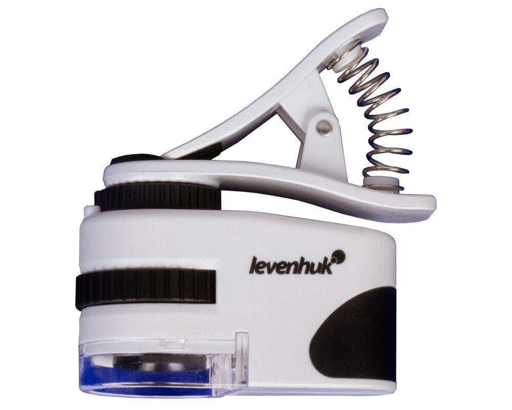 - Джобен микроскоп с щипка за прикрепяне към мобилно устройство