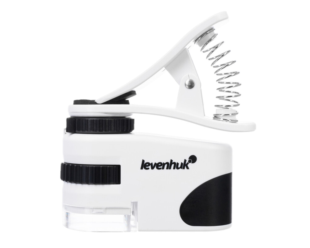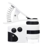- Джобен микроскоп с щипка за прикрепяне към мобилно устройство