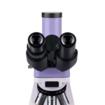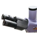 <p>Тринокулярната глава включва две окулярни тръби за наблюдение и вертикална тръба за монтиране на цифрова камера (не е приложен). Тръбите са наклонени на 30° за удобно продължително наблюдение и могат да се завъртат на 360° съобразно височината на наблюдаващия. Има пръстен за регулиране на диоптъра, който се намира на лявата тръба.</p>