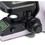 <p>Течнокристалният екран в основата на микроскопа показва увеличението на обектива, яркостта и цветовата температура на светлинния източник, както и режима на работа („спящ“, „еко“).<br />