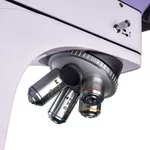 <p>В базовата конфигурация увеличението на микроскопа е от 50х до 600x. За повишаване на горната граница на увеличението може да монтирате допълнителни окуляри. Револверната глава с обективи е ориентирани навътре. Могат да бъдат монтирани пет обектива едновременно – четири от тях са включени в комплекта, а един слот е свободен за монтиране на допълнителен обектив. Микроскопът използва планахроматични обективи с голямо фокусно разстояние, които са подходящи за микроскопия по метода на светлото поле.</p>